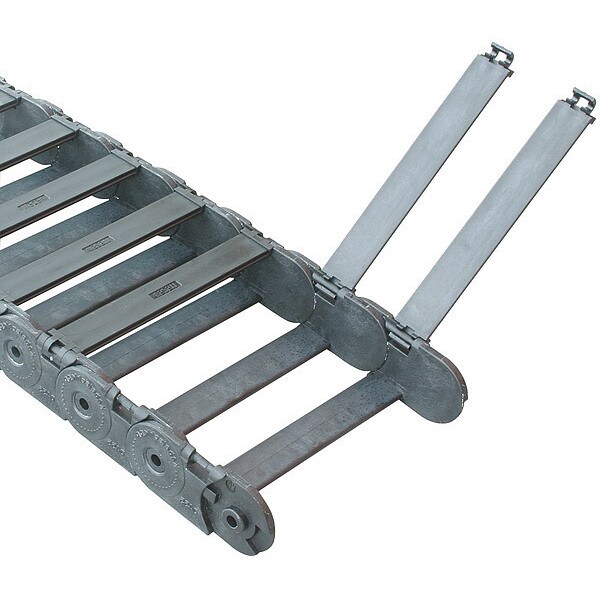 Cable and Hose Carrier, Cavity Width 5.12 in / 130 mm, Cavity Height 1.02 in/25.9 mm, Height 1.42 in / 36mm, Outside Width 5.79 in / 147mm, Bend Radius 3.74 in / 95mm, Link to Link Pitch 1.79 in/45.5 mm, Crossbar Material Nylon, Length 1', Includes No Bracket Included, Loop Height 8.90 in/226.1 mm, Loop Length 15.35 in/389.9 mm, Number of Links 7, Style Open, Type Uniflex(TM) Fiber Reinforced Nylon