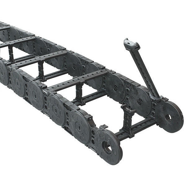 Cable and Hose Carrier, Cavity Width 6.81 in, Cavity Height 2.28 in, Height 3.2 in, Outside Width 8.4 in, Bend Radius 6.69 in, Link to Link Pitch 3.74 in /95.0mm, Mounting Brackets Included No, Crossbar Material Plastic, Length 12 in, Frame Stay Nylon Cross Bar, Includes No Bracket Included, Loop Height 16.54 in, Loop Length 28.54 in, Number of Links 3, Style Open, Type Varitrak(R)Nylon Modular, Accessory Width 8.4 in, Series M