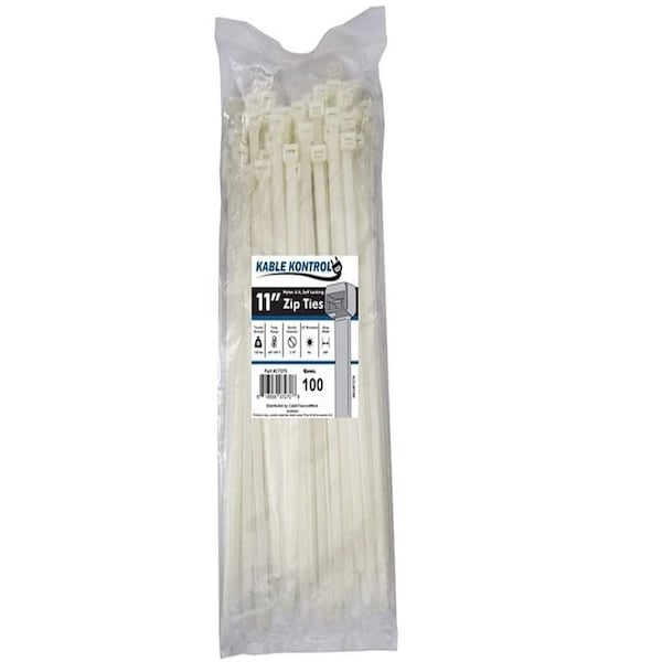 Cable Tie, 11 in L, 3-3/16 in Max Bundle Dia., Natural, Nylon 6/6, 120 lb Strength, 100 PK