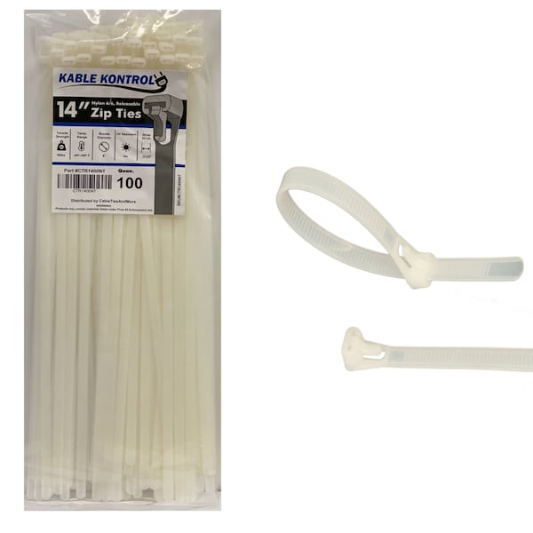 Cable Tie, 14 in L, 4 in Max Bundle Dia., Natural, Nylon 6/6, 50 lb Strength, 100 PK