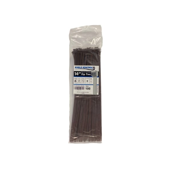 Cable Tie, 14 in L, 4.01 in Max Bundle Dia., Brown, Nylon 6/6, 50 lb Strength, 100 PK