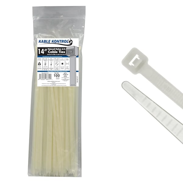 Cable Tie, 14 in L, 4.01 in Max Bundle Dia., Natural, Nylon 6/6, 120 lb Strength, 100 PK