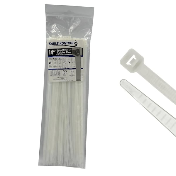 Cable Tie, 14 in L, 4.01 in Max Bundle Dia., Natural, Nylon 6/6, 50 lb Strength, 100 PK