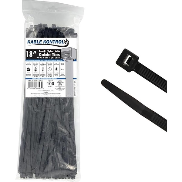 - Dimensions: 18" Long | 100 Pcs/Pack | Black | 175 Lbs Tensile Strength | UV Resistant Nylon 6-6.