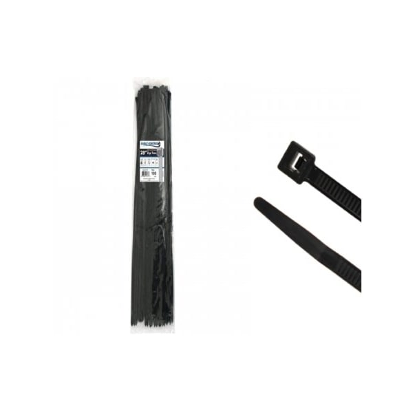 Cable Tie, 28 in L, 8.66 in Max Bundle Dia., Black, Nylon 6/6, 175 lb Strength, 100 PK