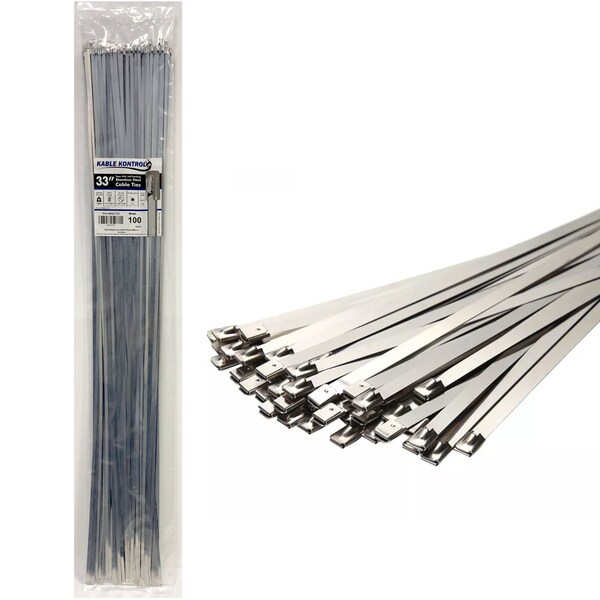 Cable Tie, 33 in L, 10 in Max Bundle Dia., Silver, 304 Stainless Steel, 200 lb Strength, 100 PK
