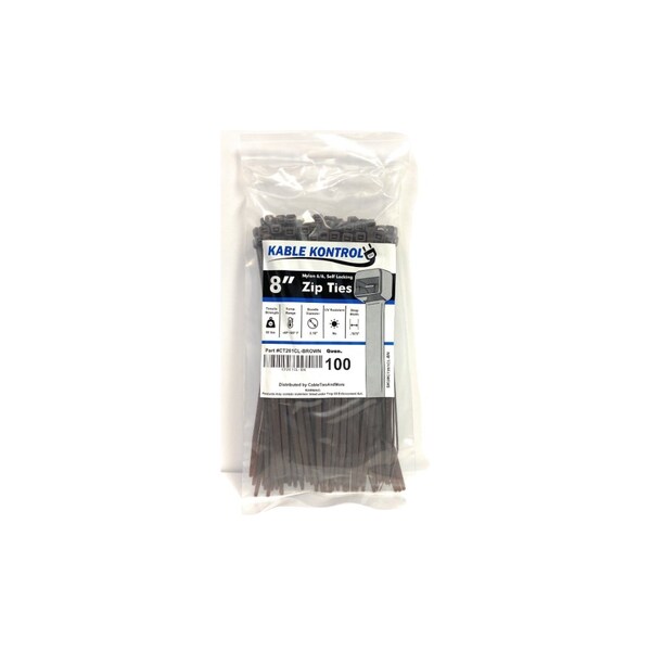 Cable Tie, 8 in L, 2.16 in Max Bundle Dia., Brown, Nylon 6/6, 50 lb Strength, 100 PK