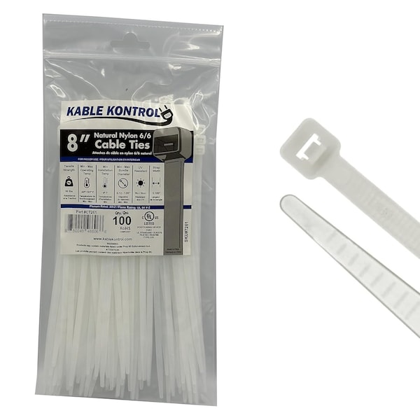 Kable Kontrol® Clear nylon cable ties are the ideal high quality, durable, and cost-effective option for all indoor zip tie applications where your cable ties will be used for bundling wires or securing objects. These cable ties are UL94V-2 Rated, meaning they conform to the standards set by UL in terms of standards for the safety of flammability of plastic parts. Our cable ties are also Rohs, CSA and Mil-Spec rated. In some cases, clear zip ties are referred colloquially to as “white” cable ties. However, these cable ties are not actually transparent or see-through. instead, they are natural nylon.These natural cable ties are specifically manufactured to be used for indoor or in wall cable bundling due to the fact that these cable ties meet UL94V-2 standards for low smoke production. Natural nylon zip ties can be used outdoors however, they will only serve as a temporary solution since they are not UV protected.