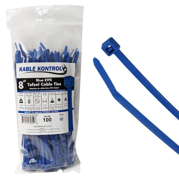 Kable Kontrol Tefzel cable zip ties are high-performance high temperature fastening solutions designed to provide secure organization and management for a wide range of cables and wires. Made from durable, high-quality Tefzel ETFE material, these zip ties offer superior resistance to extreme temperatures, chemicals, and UV exposure. Ideal unique blue Tefzel zip ties for both indoor and outdoor applications. These zip ties are ideal for use in harsh environments, ensuring that your cables remain neatly organized and protected. Tefzel's non-corrosive properties make these ties perfect for use in industrial, electrical, automotive, and marine settings. With easy-to-use locking mechanisms, these ETFE Tefzel cable zip ties ensure a strong hold that keeps your cables secure without damaging them.