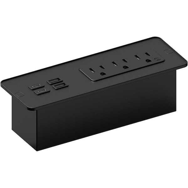 Transform your workspace or living area with the Kable Kontrol Recessed Power Strip. This sleek, flush mount charging station is designed for easy integration into your furniture, whether its a side table or end table. Featuring two high-speed PD65W USB-C ports and two USB-A ports, it provides versatile charging options for your devices, ensuring quick power-ups when you need them most. Equipped with three standard power desk outlets, this power strip accommodates all your electronic needs, from laptops to lamps, without cluttering your space. The 5.7-foot cord offers flexibility in placement, allowing you to connect to outlets even in hard-to-reach areas. Its modern black finish seamlessly blends with any decor, while the recessed design keeps everything tidy and organized. Additionally, it provides multi-safety protection with overloading and surge protection. Ideal for home offices, living rooms, or conference areas, the Kable Kontrol Recessed Power Strip combines style and functionality, making it the perfect solution for todays tech-savvy lifestyles. Elevate your charging experience today!