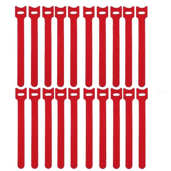 Hook and Loop Fastener Wrap, 7 in, 1/2 in W, Red, 20 PK