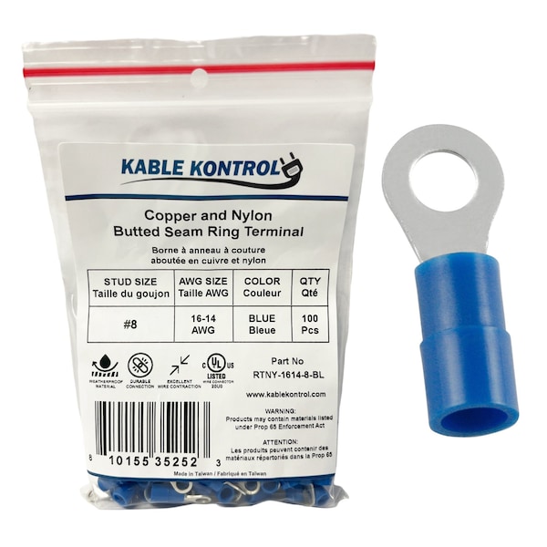 - Premium Quality: Kable Kontrol Nylon Ring Terminals are made with high-quality copper and nylon insulation, offering durability and long term performance.