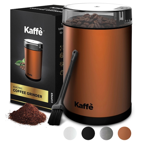 Electric Coffee Grinder - 14 Cup (3.5oz) with Cleaning Brush. Easy On/Off, Copper