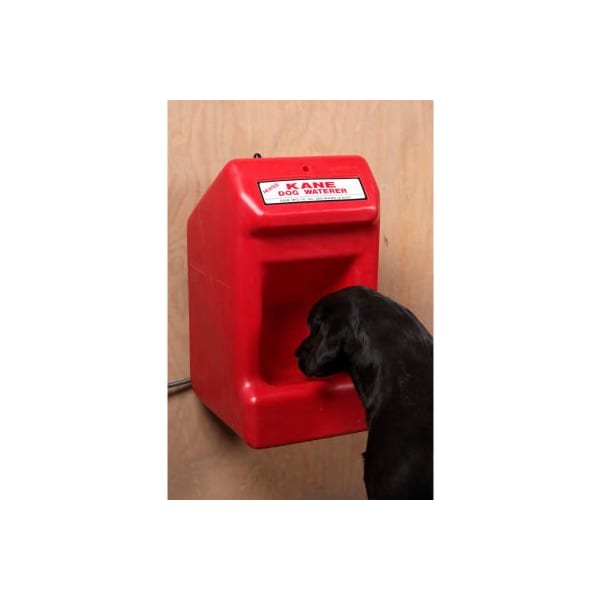 Kane kdw-h heated dog waterer red the kane heated dog/pet/small animal waterer has automatic, electric 110v thermostat that controls water temperature, no frozen water. tested to withstand -30 degrees wind-chill. it is easy to fill and clean. it has a large 5 gallon capacity. it comes with self-mounting brackets. comes complete, just fill with water and plug in!!