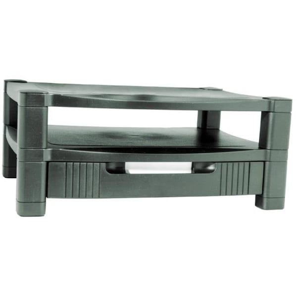 - Two-Level Monitor Stand with drawer adjusts in height from 3 in. to 6-0.5 in. in 1.25 in. increments.