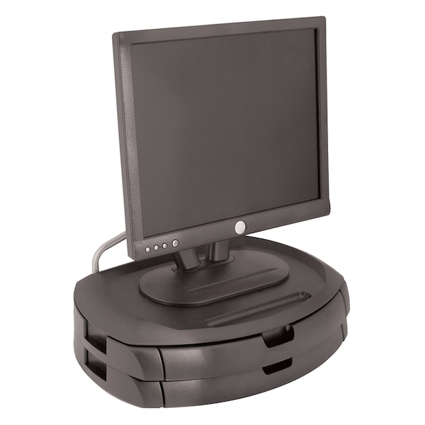Kantek LCD Monitor Stand with Drawers - Flat Panel Display Type Supported - 5" Depth - Black