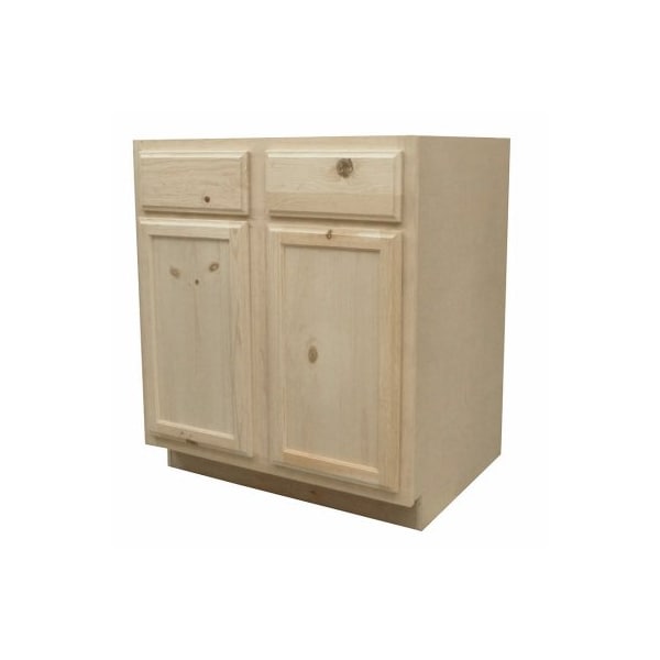 30 x 3412, Pine, Unfinished Base Assembled Cabinet, Solid Pine Front, All Plywood Construction Box, Flat Panel