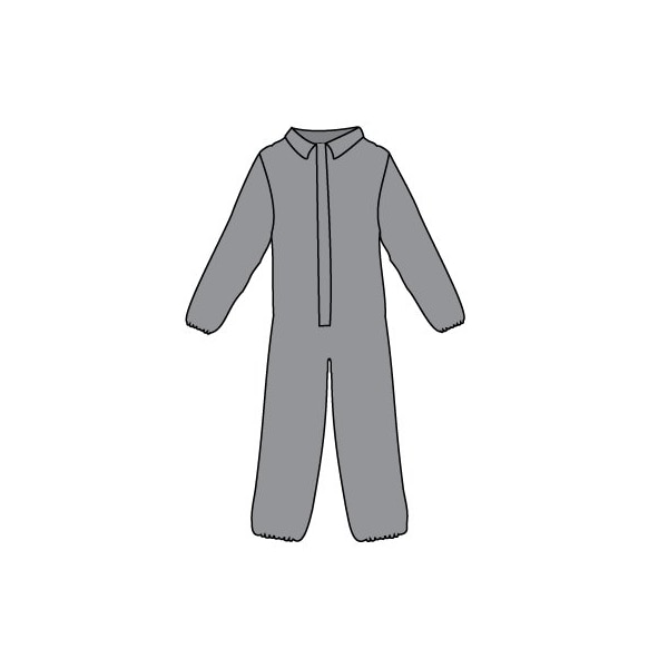 Zytron 200 Coverall. Collar, Front Entry Zipper, Single Storm Flap with Adhesive Tape Closure, Elastic Wrists and Ankles. Bound Seams. Color: Gray
