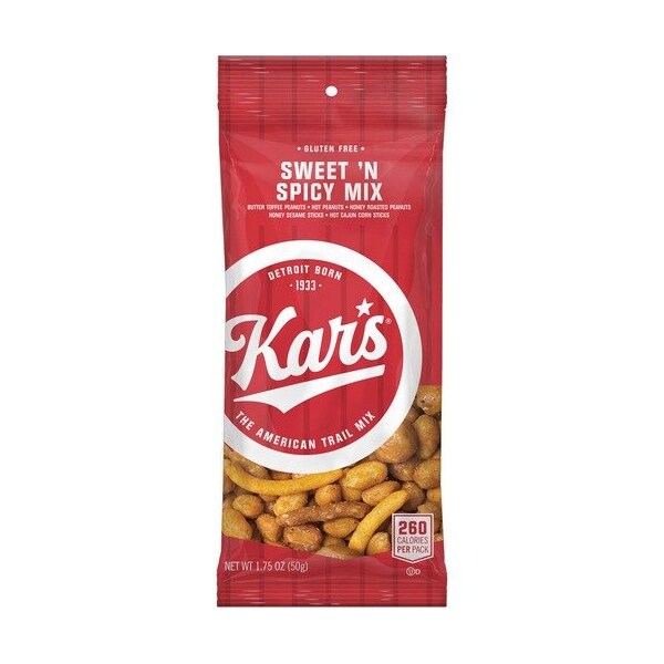 Sweet N Spicy Mix is a healthy snack for the office or on the go. 1.75 oz. packs of trail mix also offer a single-serve snack for the breakroom. Mix contains peanuts with a butter toffee coating, roasted peanuts, honey roasted peanuts, Cajun Corn Sticks, and roasted sesame sticks.