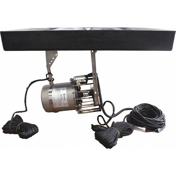 Pond Surface Aeration System, 3/4 hp HP, Voltage 120V, Full Load Amps 6.7 A, Cord Length 200 ft, Max. Spray Width 20 ft, Max. Spray Height 1 ft 6 in, Length 13 in, Width 13 in, Height 23 in, 60 Hz, Installation Position Horizontal or Vertical, Motor Type Permanent Split Capacitor, Motor RPM 1,750 RPM, Continuous Duty, Overload Protection Yes, Includes (2) 50 ft Mooring Ropes, Float Connection Hardware, Horizontal Float, Impeller Material Composite, Seal Material Carbon and Ceramic