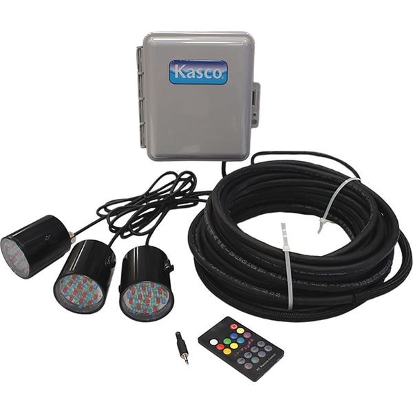 Fountain Lighting System, Housing Material Composite, 12V DC, 5 W Watts, Number of Lamps 6, Lamp Type LED, For Use With 2 to 3 hp Units, Conduit Size 2 in SJTOW, Cord Length 200 ft, Lamp Watts 5 W, Application Decorative Water Feature Using A Kasco Fountain, Includes 3mm Y-Connector, Color controller, Control Panel