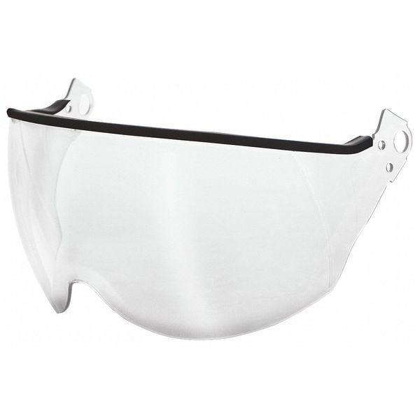 Hard Hat Visor, Lens Color Clear, Lens Coating Anti-Fog, Scratch-Resistant, Lens Material Polycarbonate, Frame Style Panoramic, Frame Material Polycarbonate, Mounting Style Clip-On