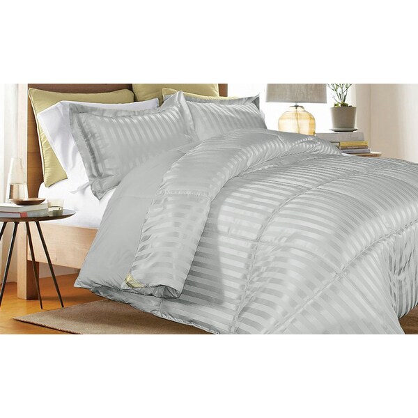 Down Alternative Solid/Stripe Reversible Comforter, Platinum, Twin