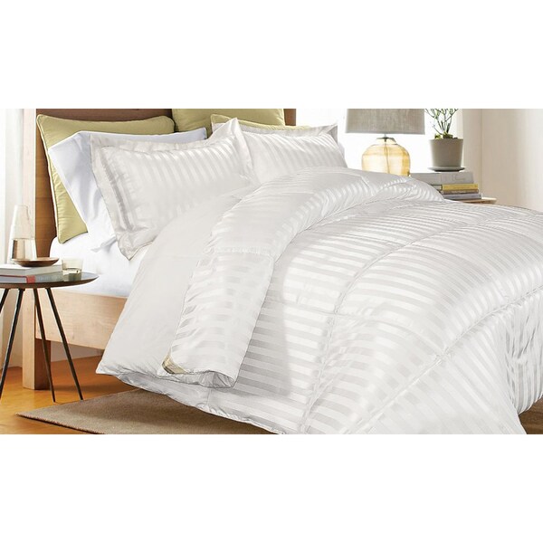 Down Alternative Solid/Stripe Reversible Comforter, White, Twin