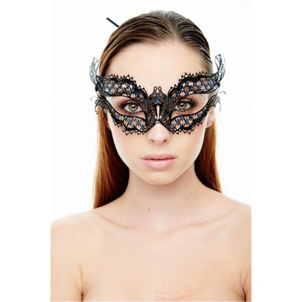 Mysterious Elegance Black Laser Cut Masquerade Mask with Blue Rhinestones One Size (Discontinued)
