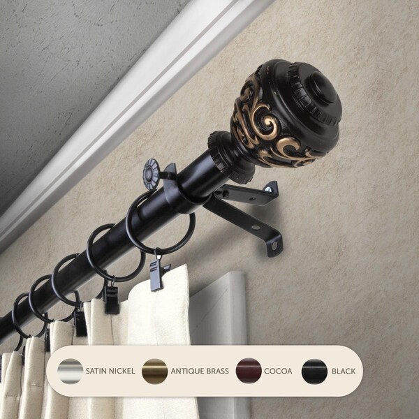 0.8125 in. Harmony Curtain Rod with 48 to 84 in. Extension, Black