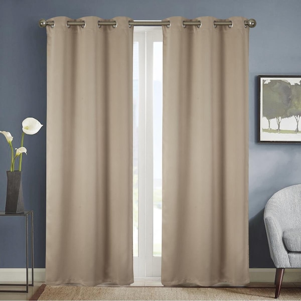 54 x 84 in. Anchorage Solid Blackout Grommet Single Curtain Panel - Sesame