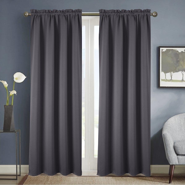 54 x 90 in. Twilight Solid Blackout Rod Pocket Single Curtain Panel - Charcoal