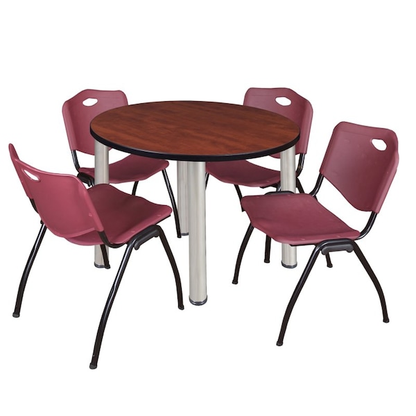 Kee Round Table & Chair Set, Wood, Metal, Plastic Top, Cherry