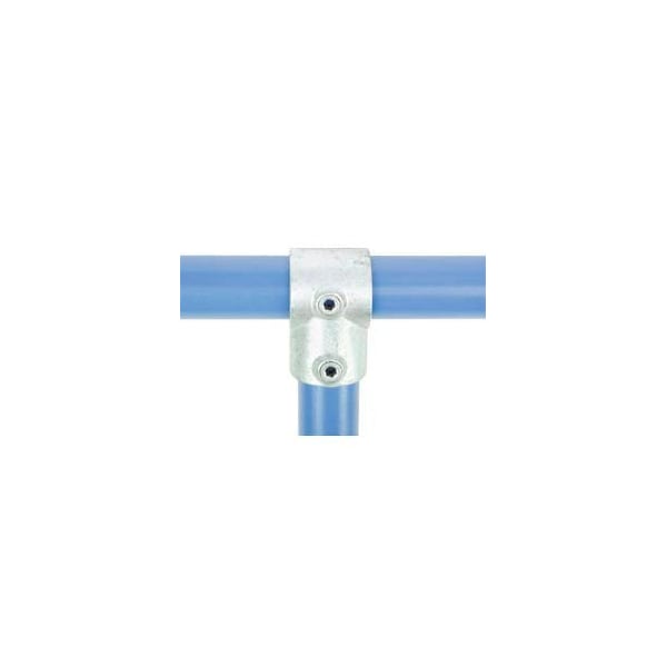 KEE KLAMP® FITTINGS SINGLE SOCKET TEE DESIGNED TO GIVE A 90° BUTT JOINT BETWEEN TWO PIPES. FREQUENTLY USED FOR THE JOINT BETWEEN END UPRIGHTS AND THE MIDDLE RAIL ON SAFETY RAILING WHERE THE SITE IS STRAIGHT AND LEVEL. ALSO FOR BASE TIES ON RACKING. THIS FITTING CANNOT BE USED WHERE THE PIPE THROUGH SLEEVE 'A' IS REQUIRED TO BE JOINED WITHIN THE FITTING. TYPE 25 SHOULD BE USED WHEN A JOIN IN THE PIPE IS NECESSARY.