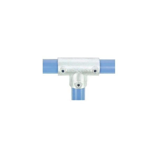 KEE KLAMP® FITTINGS 90° THREE SOCKET TEE MOST COMMONLY USED AS THE 90° JOINT BETWEEN THE TOP RAIL AND AN INTERMEDIATE UPRIGHT ON SAFETY RAILING. AS THERE ARE TWO SOCKET SET SCREWS IN THE SLEEVE, THIS FITTING CAN BE USED WHERE A JOIN IS REQUIRED IN THE HORIZONTAL PIPE. THE TYPE 10 FITTING CAN BE USED AS AN ALTERNATIVE WHEN A JOIN IN THE PIPE IS NOT REQUIRED.