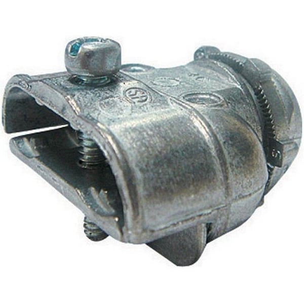 - 1/2 in. knockout. Single screw. Used to terminate two runs of armored cable, metal clad cable or flexible metal conduit to a 1/2 in. knock out in a dry location box or enclosure. CSA listed.
