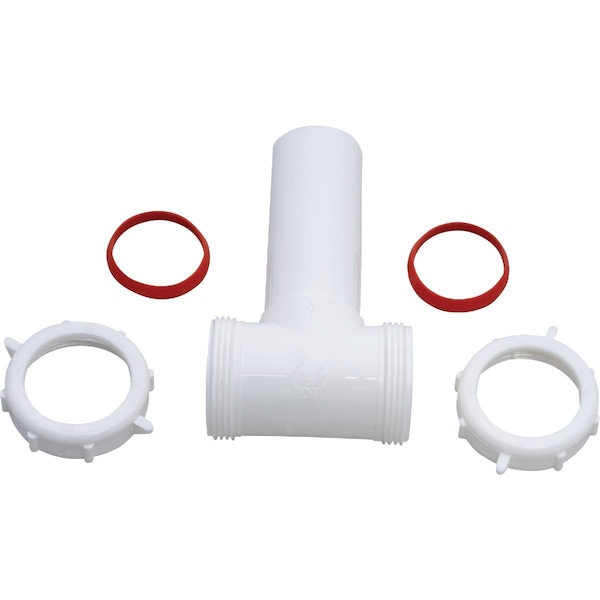 The Keeney 1-1/2 In. White Polypropylene Center Outlet Tee allows for slip joint connection making under-sink installation quicker and easier. Made of durable white polypropylene the Center Outlet Tee has an 1-1/2 In. inlet. The included nuts and washers safeguard against leaks for a problem-free connection. Keeney is a leading manufacturer and distributor of tubular drainage products. Founded in 1923 the Keeney product line includes under-sink drainage quarter-turn valves bath drains toilet repair parts and more.