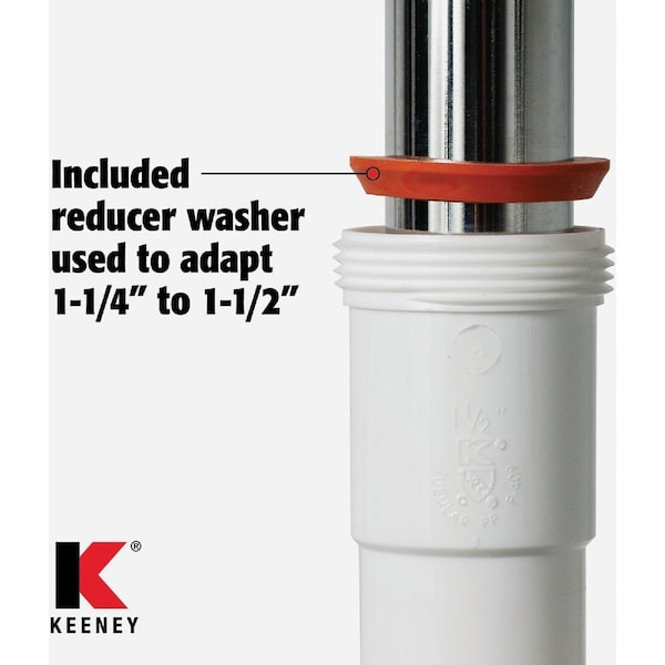 Stops leaks in plastic slip-joint nuts. Contains 1 each of 1-1/2 x 1-1/4 reducing poly washer and 1 each of 1-1/2 x 1-1/2 plastic washer. Bagged.