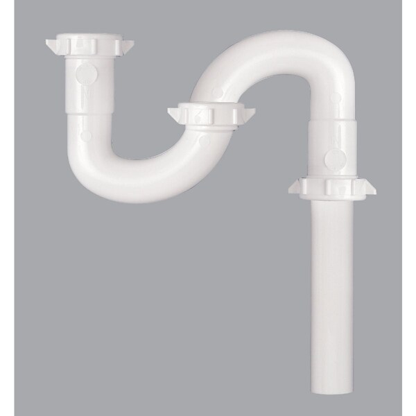 Replacement S-trap for bathroom lavatory drains includes nuts and washers. White plastic. Bagged.