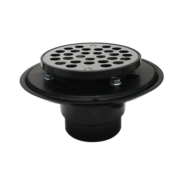 Keeney's SD3ABSADJ drain and metal cover are part of a collection of assorted no caulk, solvent weld, and threaded outlet shower drains. It's designed for use with 2-in. Schedule 40 DWV pipe and ABS solvent weld connection in shower stalls, featuring an adjustable height and beveled edge.