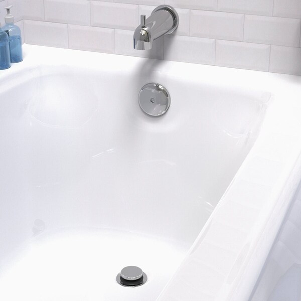 Polished chrome single hole tub overflow face plate. Includes screw.