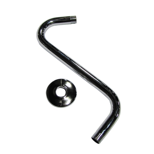 S-Shaped Shower Arm and Flange, Polished Chrome