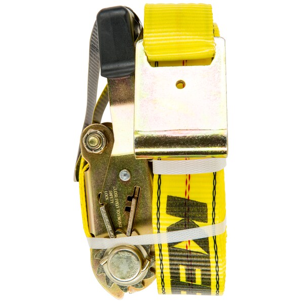 27'x2" Ratchet Tie-Down, EZ Release, Yel, Flat Hooks, 3,333Lbs WLL