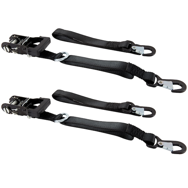 8'X1-1/4" Ratchet Tie-Down, Blk, Snap Hooks W/D-Rings, 1,000Lbs WLL, PK2