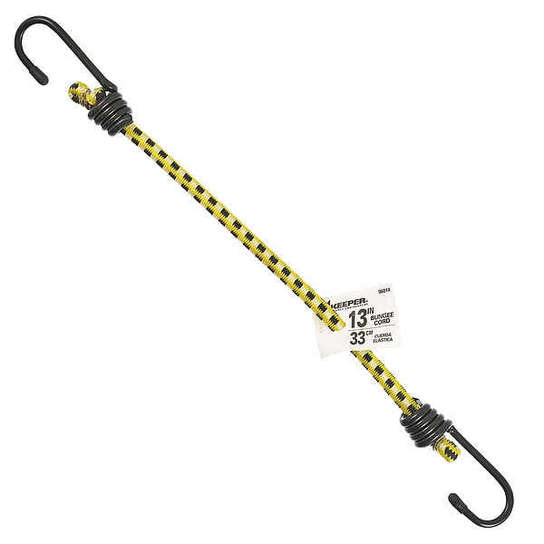 Bungee Cord, Bungee Material Polypropylene, Cord Outer Material EPDM, End Type J-Hook, Hook Length 2 in, Hook Opening Size 3/4 in, End Material Steel, Stretch Length - Maximum 19 1/2 in, Cord Diameter 1/4 in, Overall Length 13 in, Overall Width 3/8 in, Thickness 1/4 in, Color Multicolored, Product Type Bungee Cord, Tensile Strength 9 lb/in