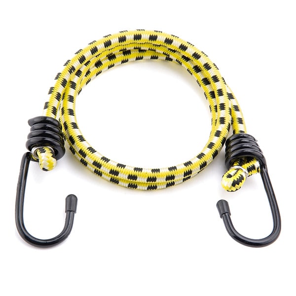 Bungee Cord, Bungee Material Polypropylene, Cord Outer Material EPDM, End Type J-Hook, Hook Length 2 in, Hook Opening Size 3/4 in, End Material Steel, Stretch Length - Maximum 54 in, Cord Diameter 1/4 in, Overall Length 36 in, Overall Width 3/8 in, Thickness 1/4 in, Color Multicolored, Product Type Bungee Cord, Tensile Strength 9 lb/in