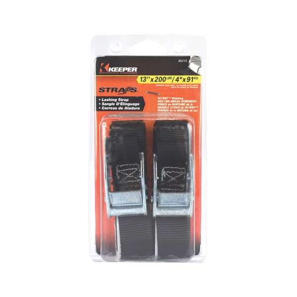Keeper 1 in. W X 13 ft. L Black Lashing Strap 200 lb 2 pk