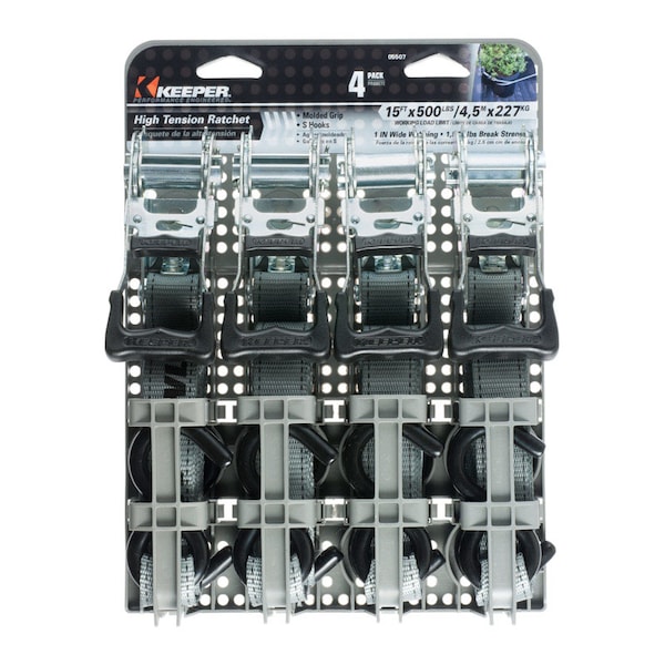 Keeper 1 in. W X 15 ft. L Gray Ratchet Tie Down Strap 500 lb 4 pk