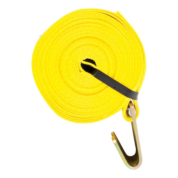 The Keeper Winch Strap is constructed with a bright fluorescent yellow polyester webbing that keeps its shape and durability in all weather conditions and applications. To engage affix the flat hook to a stake pocket or railing side, secure the strap over the cargo, attach to ratchet tie-down or winch (sold separately) then adjust to desired tension to keep cargo in place.