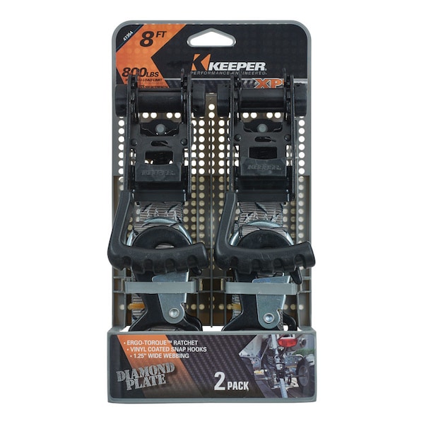 Keeper Ergo-Torque 1.25 in. W X 8 ft. L Gray Ratchet Tie Down Strap 800 lb 2 pk